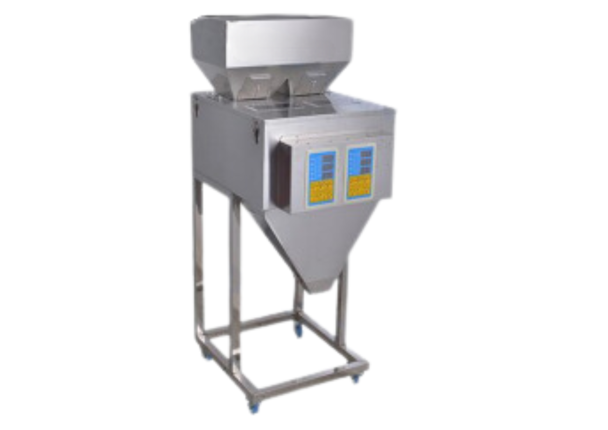 Remplisseuse poudre granule semi-automatique 2T5000 Cette machine est conçue pour le remplissage de grandes quantités avec une double tête, permettant une production efficace et rapide en acier inoxydable qui peut peser et remplir de la poudre et des granules dans une plage de 50 à 5000 grammes, adaptée pour une variété d’applications telles que le thé, les graines, les céréales, le sésame, le riz, le sel, les produits chimiques, les micro-composants, etc
